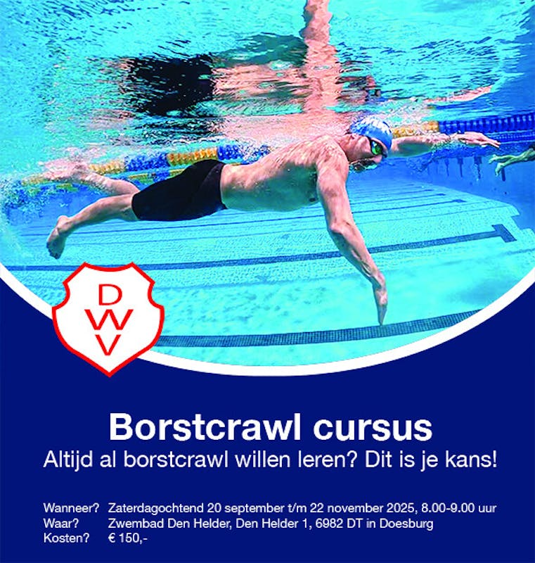 Borstcrawl zwemmen: het ziet er zo mooi uit als iemand soepel door het water glijdt. Maar als je het zelf probeert, is er weinig soepels aan en ben je al snel uitgeput en buiten adem. Voor veel mensen is dit herkenbaar. De beginnerscursus borstcrawl brengt daar verandering in! In 10 weken tijd krijgen de deelnemers in kleine stapjes de zwemhouding, ademhaling, arm- en beenslag onder de knie. Naast het ontwikkelen van de borstcrawltechniek staat plezier voorop. Bovendien werken de deelnemers bijna ongemerkt aan hun conditie. Meer informatie en opgeven via