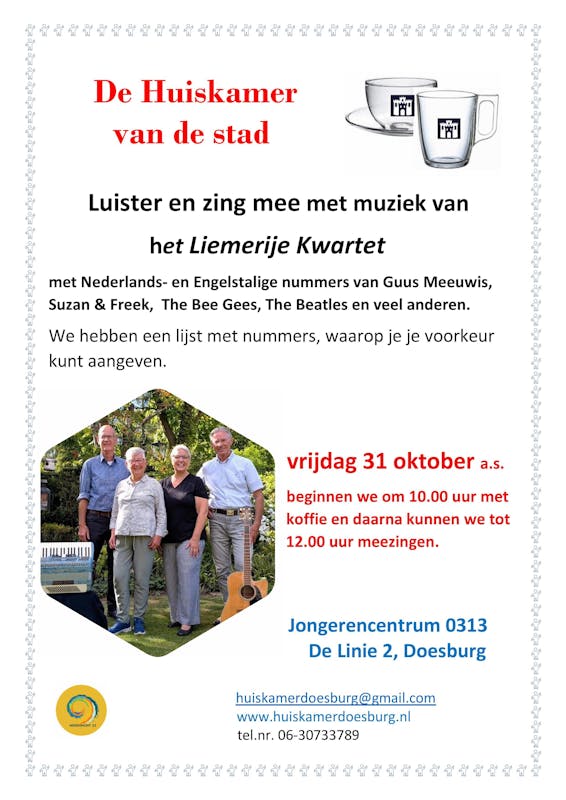 Huiskamer van de stad, in De Linie 2 (Jongerencentrum) open maandag t/m vrijdag van 10-12.00 uur. Voor al je vragen en voor gezelligheid. ... Lees meer
