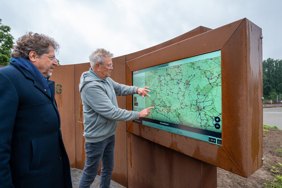 Naast het informatiepaneel, waarop je in een notendop kennismaakt met Doesburg, is er een digitaal scherm. Hier is te zien wat er in Doesburg te beleven is aan evenementen en bezienswaardigheden. Ook over de nabije omgeving vind je hier meer informatie.